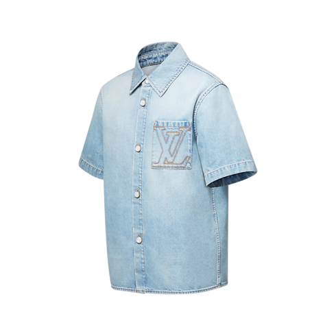 La camicia a maniche corte, in denim giapponese stone washed, rivisita un capo essenziale con l'emblematico savoir-faire della Maison. Il modello si distingue per le impunture color tabacco, le iniziali LV ricamate sulla tasca sul petto, l'applicazione in nubuck con logo sul retro e i bottoni con effetto perla. La versatile creazione è ideale per completare i look informali.