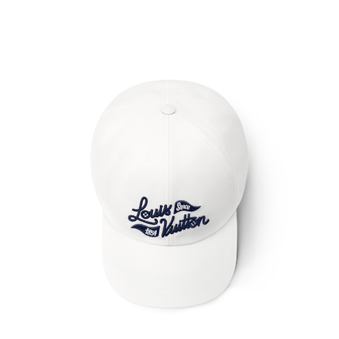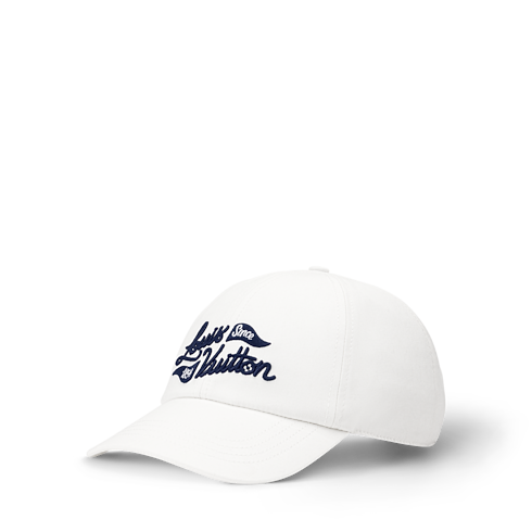 Il luminoso cappello Golf color bianco dona freschezza a una giornata sul green. La firma "Louis Vuitton Since 1854" è ricamata sul davanti in un raffinato stile calligrafico e abbinata a bandiere sportive a triangolo in un'intensa tonalità blu. Il cinturino posteriore è dotato di una fibbia quadrata incisa con il logo LOUIS VUITTON, per un comfort personalizzabile e un'eleganza senza pari.