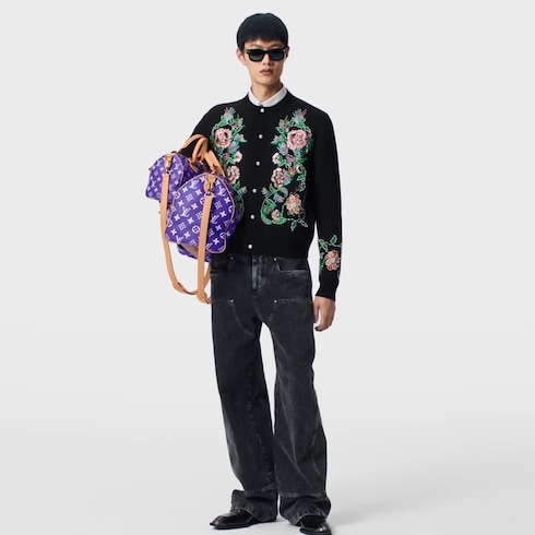 Il cardigan, realizzato in pregiata lana merino, è decorato da un motivo floreale in trama jacquard, impreziosito con cristalli, perle in resina, paillettes e perline. L'esclusivo modello è ispirato allo stile Western rétro della sfilata Autunno-Inverno 2024. L'originale creazione è completata da bottoni con effetto perlato che rifiniscono il capo casual e senza tempo.