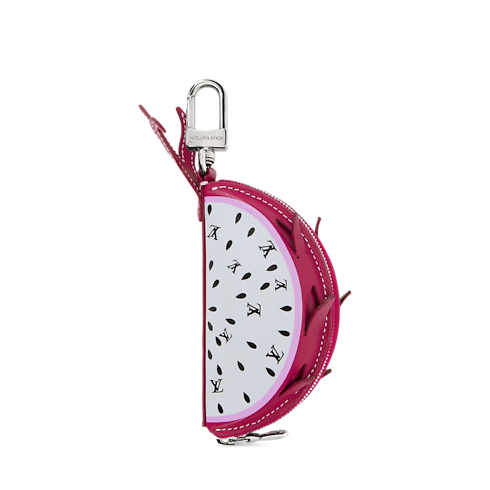 La pochette LV Dragon Fruit reinterpreta i codici di questo delizioso frutto tropicale. Avvolto in una vivace pelle color rosa, il prezioso accessorio mette in risalto i caratteristici semi del frutto, reinventati come una raffinata pioggia di iniziali della Maison. All'interno del charm dotato di zip è possibile riporre chiavi o un paio di auricolari wireless.