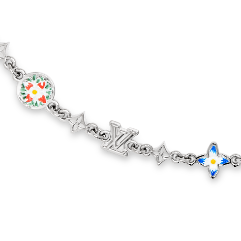 La cintura a catenella Monogram Flower è l'accessorio ideale per chi desidera un modello iconico arricchito da un tocco di colore. Il raffinato intreccio è composto da charm con iniziali e fiori iconici, ispirati all'intramontabile motivo Monogram della Maison, impreziositi da delicati dettagli cromatici che richiamano quelli delle fioriture. La costruzione color argento conferisce una versatilità senza tempo, perfetta per ogni occasione.