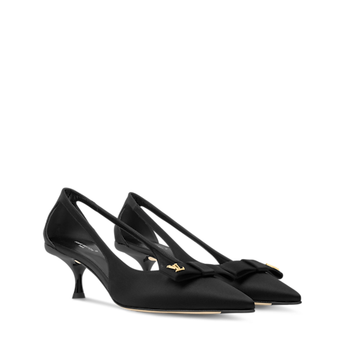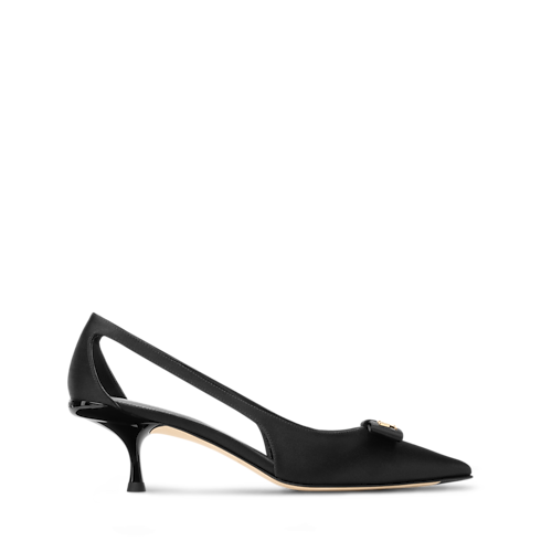 Questa edizione della décolleté 6AM è realizzata in satin liscio. La tomaia si distingue per i lati con dettagli cut-out e per il nodo piatto sulla parte anteriore, impreziosito da una borchia con iniziali LV dorate. Il tacco medio, realizzato in resistente materiale ABS, si abbina perfettamente al resto della calzatura, per un risultato di raffinata eleganza.