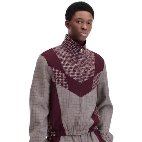 Questa felpa sportiva con taglio sartoriale e silhouette casual è ispirata al tema delle dimore di campagna britanniche protagonista della collezione. Realizzata nei toni del bordeaux, presenta una raffinata base con motivo a righe, inserti grafici sportivi in Monogram Plaid e pannelli a tinta unita a contrasto. Perfetto per rilassarsi al termine della giornata, questo capo può essere abbinato ai pantaloni coordinati per un look moderno e senza tempo.