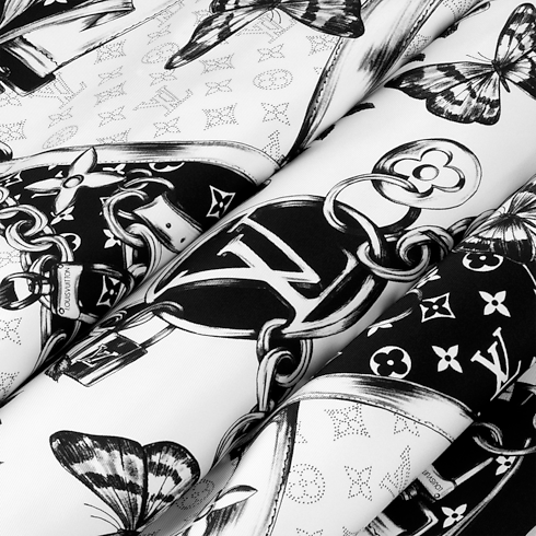 Il foulard Blooming Monogram 90 si distingue per l'audace design in seta stampata, ispirato ai romantici tatuaggi floreali. L'iconico fiore oversize al centro è impreziosito da eleganti immagini di boccioli e farfalle, oltre a lucchetti, porte adresse e tracolle che richiamano la tradizionale valigeria della Maison. Il celebre motivo di Louis Vuitton e le iniziali LV conferiscono un'ulteriore nota emblematica.