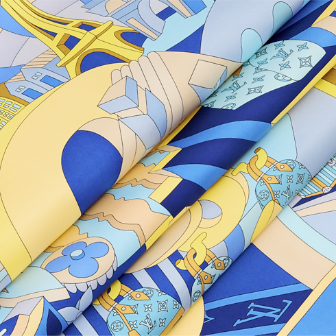 L'innovazione incontra l'immaginazione nell'artistico motivo del foulard LV Wonderland. Stampato su sontuosa seta, raffigura un paesaggio ironico e futuristico di fiori Monogram, con i bauli e le borse iconici di Louis Vuitton e la firma della Maison in lettere dinamiche dall'effetto 3D. Grazie ai suoi colori radiosi e ai contrasti accattivanti, questo accessorio versatile esprime un'audace dichiarazione di stile.