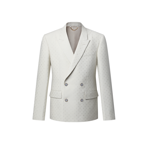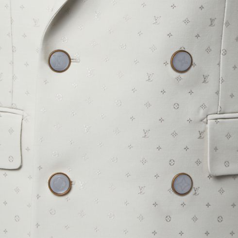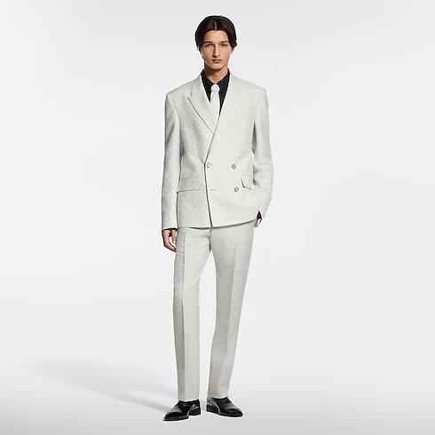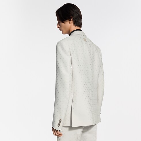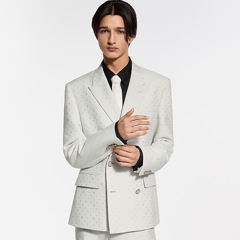Questa raffinata giacca doppiopetto da sera, declinata in una delicata tonalità avorio, è perfetta per gli eventi estivi. Il modello presenta il motivo Spaced Mini Monogram realizzato in trama jacquard tono su tono ed esaltato da un sofisticato gioco di superfici opache e lucide, grazie al pregiato tessuto in seta e mohair. La silhouette slanciata, vera icona dello stile dandy nel guardaroba maschile, crea un completo impeccabile se abbinata ai pantaloni coordinati.