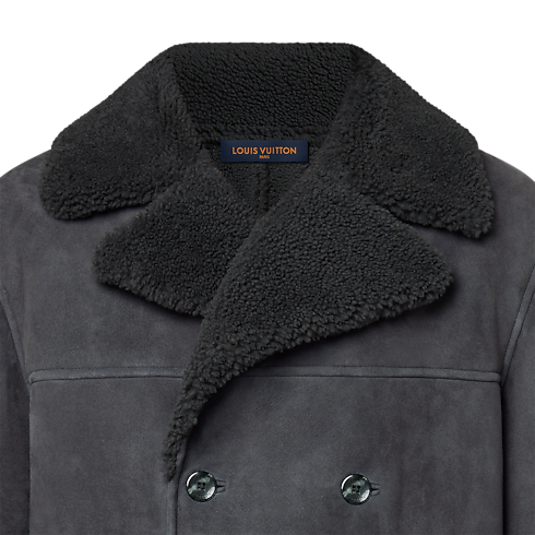 Il cappotto dall'allure rétro aggiunge una nota di eleganza a qualsiasi look sartoriale. L'esclusivo modello doppiopetto, proposto in lussuoso shearling e arricchito da un morbido esterno scamosciato, è realizzato in raffinate tonalità di grigio scuro perfette da abbinare agli outfit invernali. L'iconica applicazione con firma Marque L. Vuitton déposée sulla manica sinistra completa il capo con un tocco di stile.