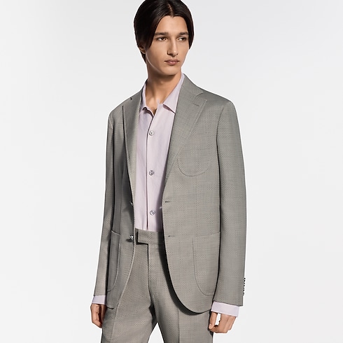 Questa giacca Napolitana monopetto color beige chiaro è realizzata in pregiata lana vergine, caratterizzata da un raffinato motivo Micro Flower Damier tono su tono in trama jacquard e impreziosita da bottoni iconici con effetto madreperla. Il taglio morbido, ispirato alla sartoria italiana, offre una silhouette elegantemente disinvolta. Abbinata a pantaloni a sigaretta dal profilo slanciato, crea un completo sofisticato e contemporaneo, perfetto per occasioni di lavoro, serate estive eleganti o matrimoni.