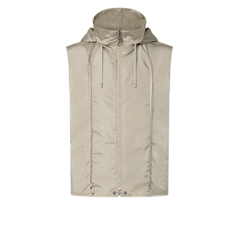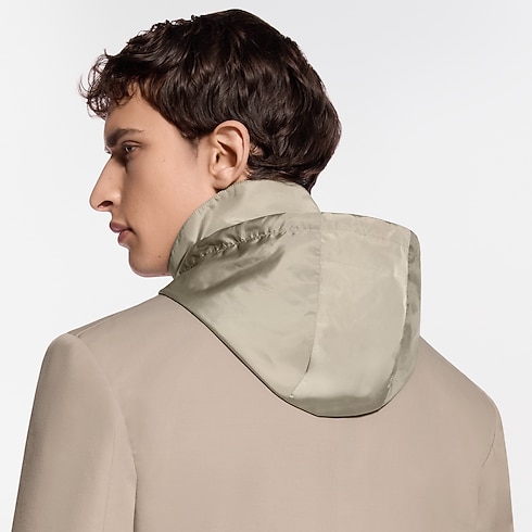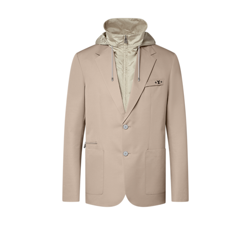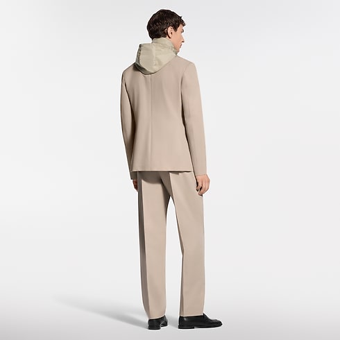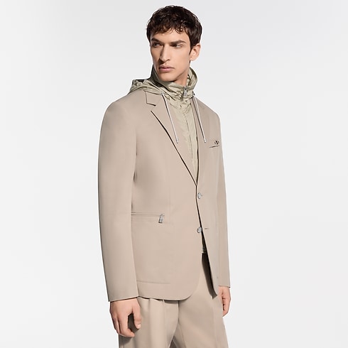 Questa giacca monopetto 3 in 1, confezionata in twill di lana e cotone idrorepellente, è sovrapposta a un gilet tecnico amovibile con cappuccio ripiegabile. La tasca sul petto con zip, impreziosita da un ornamento LV in metallo, e il taschino portamonete con zip aggiungono una nota funzionale. Proposta nell'elegante tonalità beige senza tempo, si abbina ai pantaloni coordinati per un look business moderno.