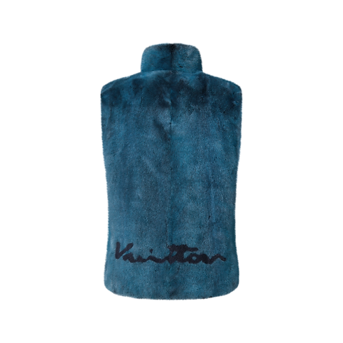 Il gilet, in morbida e lussuosa pelliccia di visone, è proposto in una profonda sfumatura di blu, ispirata ai suggestivi bagliori dell'aurora boreale. L'esclusivo modello è impreziosito dagli intarsi a forma di fiore Monogram a contrasto sul petto e dall'iconica firma Vuitton sul retro. Il capospalla, elegante e sofisticato al tempo stesso, è un imprescindibile must-have per la stagione invernale.