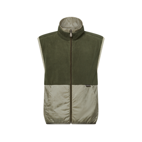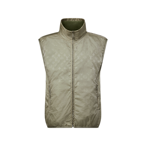 Questo gilet reversibile, declinato nei raffinati toni del verde, è realizzato in tessuto tecnico con motivo Monogram in trama jacquard all-over. Su un lato, il dettaglio superiore al centro è impreziosito è in pile, aggiungendo calore e un sofisticato effetto color-block sportivo. Il capo versatile è perfetto per creare look a strati nella stagione primaverile, poiché conferisce una nota di eleganza emblematica alle delicate tonalità neutre della collezione.