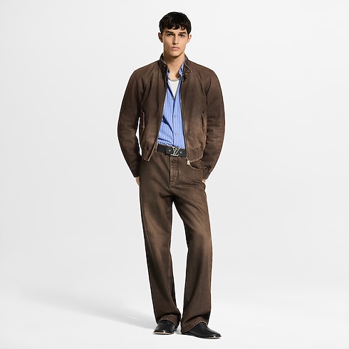 Il giubbotto in denim Coffee Indigo di questa stagione vanta un animo casual dall'eleganza raffinata. I bottoni a pressione color oro con effetto anticato e il decoro in pelle color vacchetta naturale richiamano gli iconici bauli della Maison, mentre il delicato ricamo Louis Vuitton Paris sul petto dona un tocco sofisticato alla creazione. La finitura vintage con effetto lavato, la zip, la vita e i polsini a coste completano questo capo versatile, perfetto per l'uso quotidiano.