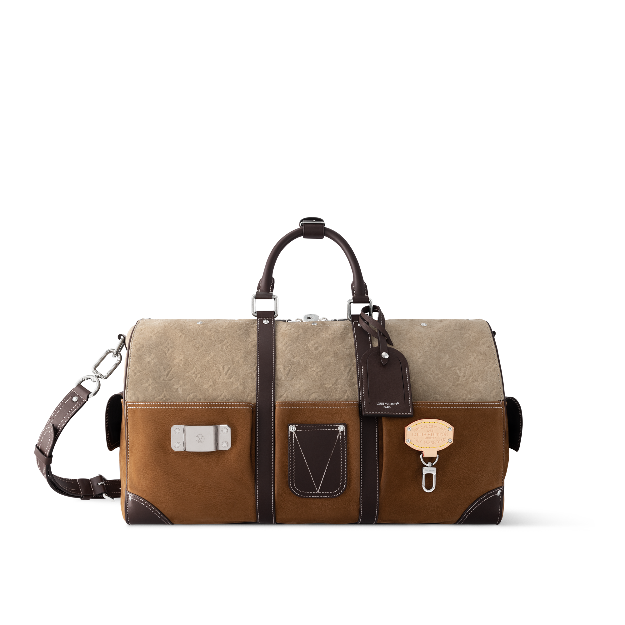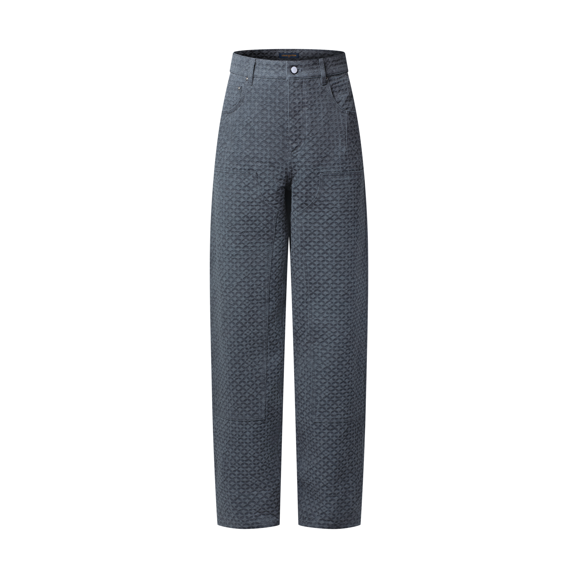 Il giubbotto stile workwear è impreziosito dal motivo Dandy Monogram in trama jacquard, distintivo della sfilata Autunno-Inverno 2025. L'esclusiva creazione, in cotone biologico color grigio scuro, presenta un colletto in pelle a coste effetto velluto e un'applicazione con firma Marque L. Vuitton déposée su una delle quattro tasche con borchie. Il capo, con fodera trapuntata, è abbinabile ai pantaloni coordinati.