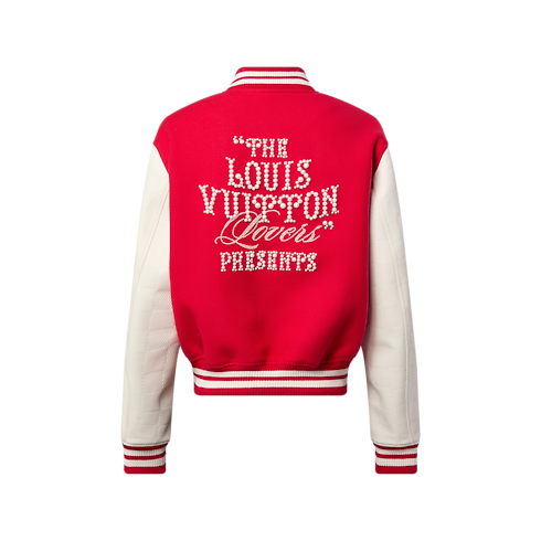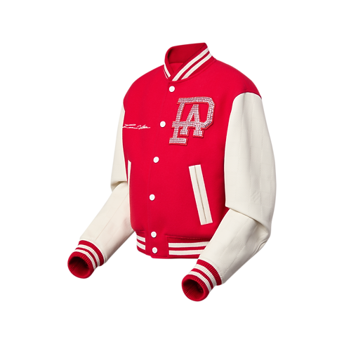 Il giubbotto Varsity, esempio dell'impeccabile savoir-faire della Maison, rievoca il passato di Pharrell Williams nel gruppo musicale della Princess Anne High School in Virginia. L'esclusiva proposta della Collezione Primavera-Estate 2024 è contraddistinta dalle maniche in morbida pelle di vitello bianca, decorate dall'iconico motivo Damier impresso tono su tono. Il logo Louis Vuitton e il dettaglio con iniziali PA completano l'insieme.