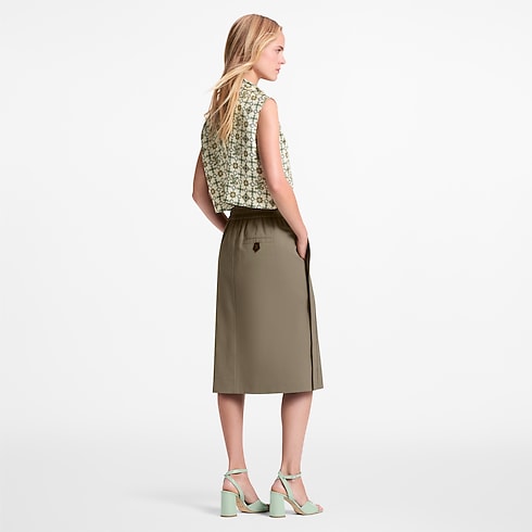 Questa gonna in twill di cotone, con taglio dritto e lunghezza a metà polpaccio, esprime un'eleganza essenziale perfetta per i look di tutti i giorni. Il modello si distingue per lo stile casual e sportivo, messo in risalto dalla vita ampia ed elasticizzata e dalla zip a doppio cursore sul davanti. La tasca posteriore è impreziosita da un dettaglio con le iniziali LV, per un raffinato tocco iconico.