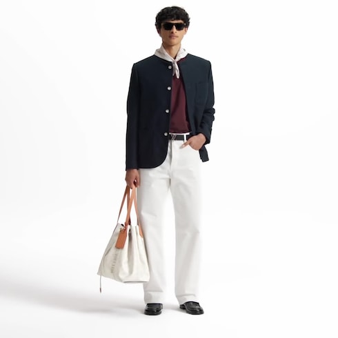 I jeans, realizzati in pregiato denim giapponese di colore bianco, rivisitano un capo essenziale con l'emblematico savoir-faire della Maison. L'esclusivo modello da skate è impreziosito dalle impunture tono su tono, dalle iniziali LV ricamate sulla tasca posteriore e dalle applicazioni in nubuck con logo in vita e sul taschino. La creazione, dall'allure casual, è perfetta per completare qualsiasi look estivo.
