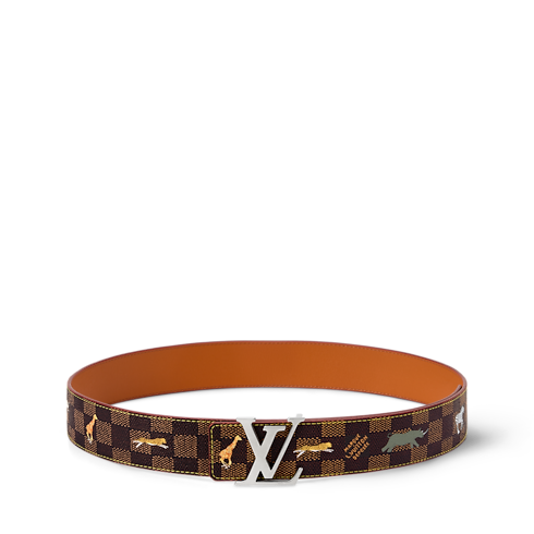 La cintura reversibile LV Initiales 40 mm LV x The Darjeeling Limited è un omaggio enigmatico all'arte narrativa cinematografica. Il lato decorato dal motivo Damier è impreziosito da animali fantasiosi, originariamente creati e visibili esclusivamente sulle valigie disegnate appositamente per il film The Darjeeling Limited. Questa rivisitazione versatile del classico accessorio è un autentico oggetto da collezione.