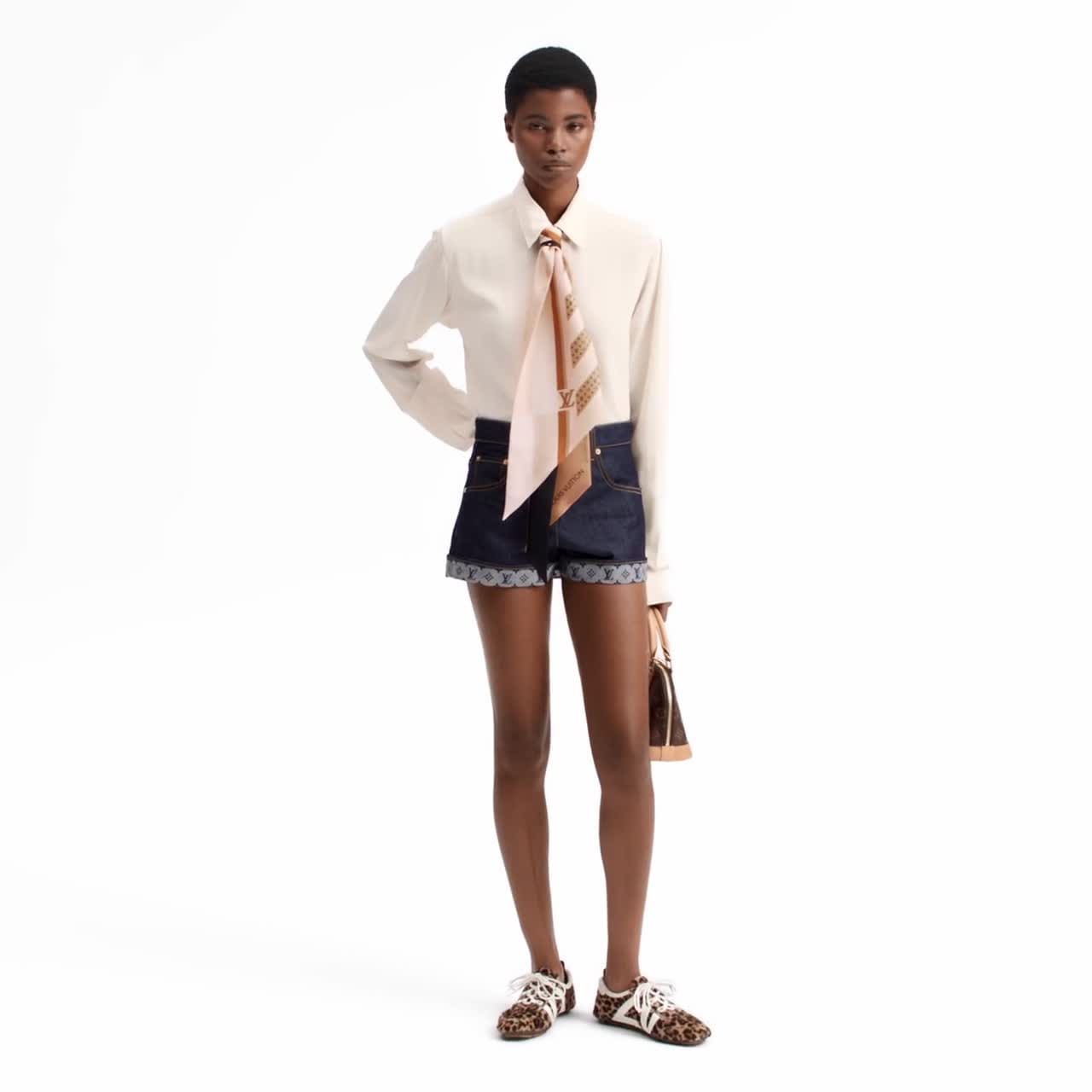 I mini shorts sono realizzati in denim di colore scuro, protagonista della stagione. Le impunture gialle a contrasto definiscono il modello con un tocco senza tempo, mentre gli orli risvoltati rivelano con eleganza l'iconico motivo Monogram della Maison stampato all'interno. La raffinata creazione, dal taglio essenziale e dritto, è perfetta per essere indossata tutti i giorni.