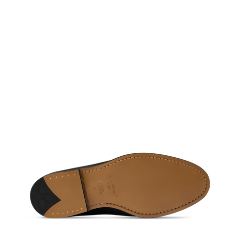 Il mocassino LV Gent è realizzato in pelle di vitello dalla straordinaria morbidezza, messa ulteriormente in risalto dalla leggerezza e dalla flessibilità della tradizionale lavorazione a sacchetto. La fascetta sulla tomaia è impreziosita da un inserto con le iniziali della Maison impresse, ispirato alle creazioni di pelletteria di Louis Vuitton. La suola in cuoio completa il raffinato modello.