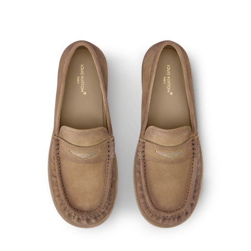 Realizzato in morbida pelle di vitello scamosciata, il mocassino LV Jazz trae ispirazione nel design dalle calzature classiche. Grazie a una costruzione esclusiva, abbina una straordinaria flessibilità nella parte dell'avampiede a un supporto strutturato sul retro. Sulla mascherina, l'iconica fascetta è impreziosita da un dettaglio in pelle con la firma Louis Vuitton impressa in color oro.