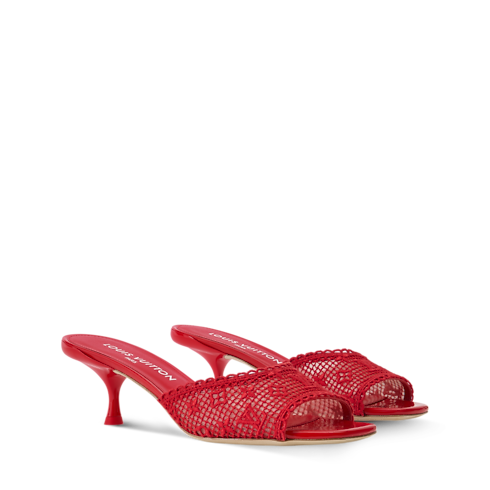 - Questa edizione della mule 6AM è realizzata in tessuto ricamato con motivo Monogram, che crea un delicato effetto simile al pizzo sull'ampio cinturino frontale, impreziosito da bordi smerlati. Il modello femminile è dotato di un elegante tacco medio in materiale ABS resistente, abbinato cromaticamente alla tomaia per un look raffinato.