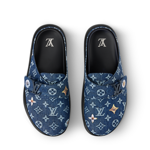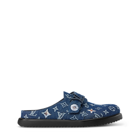 La mule LV Easy in tela Monogram Denim è impreziosita da eleganti fiori ricamati, per un’estetica al contempo casual e raffinata. La pratica calzatura modello slip-on è valorizzata da una fibbia con iniziali LV tono su tono sulla fascetta regolabile. La creazione è completata da un confortevole plantare anatomico e da una suola in gomma leggera.