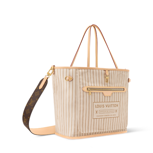 Questa raffinata edizione della borsa Neverfull Inside Out MM è realizzata in tela Monogram su un lato e si declina in una sofisticata e versatile tonalità sabbia sull'altro. È rifinita da una tracolla in pelle che permette di indossarla a spalla, oppure può essere portata a mano. È caratterizzata da parti metalliche dorate e da un dettaglio con firma Louis Vuitton che celebra l'iconico patrimonio della Maison. Il design capiente della creazione consente di accogliere un computer portatile, insieme agli oggetti indispensabili per ogni giorno.