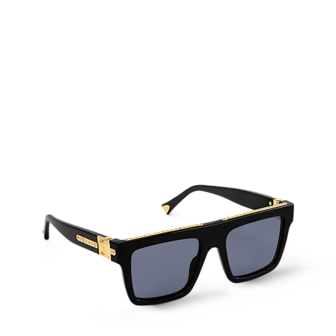 Gli occhiali da sole 1.0 Millionaires Large Square, prodotti in Italia, sono proposti in un'accattivante versione oversize dal design squadrato. L'esclusivo modello, in acetato lucido dalla tonalità nera, si caratterizza per il frontale piatto impreziosito dalla barra superiore in metallo dorato. Le aste, arricchite dal dettaglio con motivo Monogram inciso, e le iconiche cerniere a S completano la creazione.