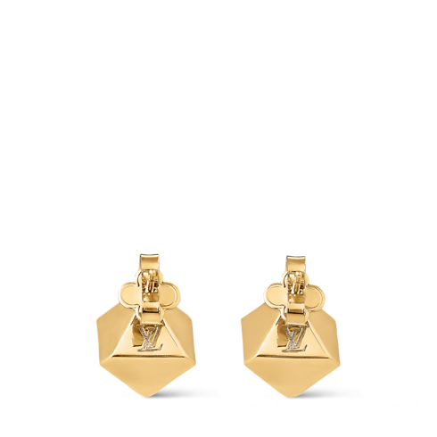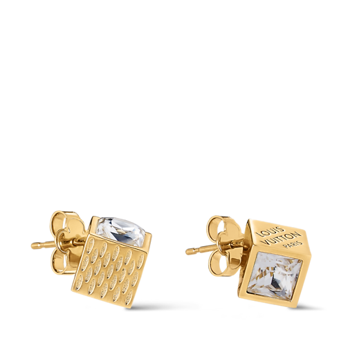 L'esclusivo design degli orecchini LV Cube trae ispirazione dallo spirito ironico di Pateki, rompicapo ideato da Gaston Vuitton nel 1932. Cubi in lucente metallo dorato sono impreziositi da scintillanti strass e incisioni che richiamano l'iconica tela Damier. La firma Louis Vuitton Paris aggiunge il tocco finale della Maison a questo modello raffinato che cattura lo sguardo.