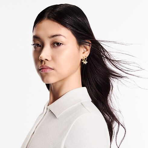 Gli orecchini LV Floragram sono impreziositi da diversi simboli della Maison. I tre gioielli sono decorati rispettivamente dalle iniziali di Louis Vuitton e dagli emblematici fiori Monogram in due varianti: una dai petali più arrotondati, l'altra dalla