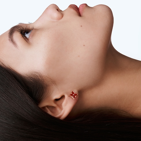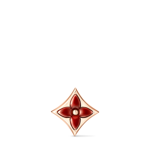 L'orecchino a bottone Color Blossom BB Star, oro rosa 18 carati e corniola rende omaggio ai fiori Monogram, creati nel 1896 da Georges Vuitton, figlio del fondatore della Maison. L'elegante accessorio si distingue per l'iconico motivo a stella incastonato, che sboccia nella preziosa pietra rossa intagliata e lucidata a mano, frutto di mesi di lavoro artigianale, che ne rifinisce le raffinate curve e gli scintillanti riflessi. L'emblematico gioiello può essere indossato da solo o abbinato ad altre creazioni della collezione.