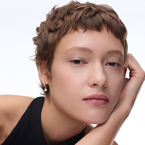 Il piccolo orecchino a cerchio LV Diamonds esalta l’eccezionale savoir-faire della Maison. Realizzato in oro bianco 18 carati, il sofisticato gioiello è impreziosito da un diamante con taglio LV Monogram Star e da altri dal taglio brillante rotondo, mentre il castone è proposto a forma di fiore Monogram stilizzato per un tocco distintivo. Raffinato, versatile e perfetto per abbinamenti esclusivi, il pregiato accessorio rappresenta un dono indimenticabile da custodire per sempre.