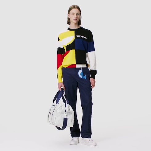 I pantaloni cargo, parte della Capsule Collection dedicata alla 37a America's Cup, rivisitano con eleganza un must-have del guardaroba casual. Il modello si contraddistingue per i risvolti e le tasche con patta decorati dall'emblematico motivo Damier e per gli esclusivi dettagli con logo "Marque L.Vuitton déposée". L'applicazione posteriore con firma Gaston ricamata in tre colori dona un tocco sportivo.