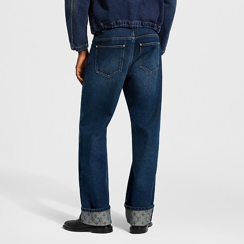 I jeans dall'intensa tonalità di indaco, caratterizzati da una vestibilità morbida da skate, sono un elemento essenziale del guardaroba casual. Il lavaggio chiaro dona al capo un aspetto vissuto, mentre il motivo Monogram tono su tono impreziosisce i risvolti. Il modello si distingue per raffinati dettagli come il dettaglio in nubuck con motivo Damier e parti metalliche dorate dall'effetto anticato. La giacca coordinata completa un look di grande impatto.