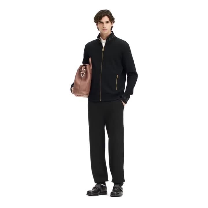I pantaloni neri in misto lana sono realizzati in una raffinata maglia double face con interno in morbido cotone. La creazione dalla silhouette minimalista, valorizzata da iconici dettagli in trama jacquard con motivo Monogram sui polsini, crea un impeccabile completo da viaggio in abbinamento al giubbotto coordinato.