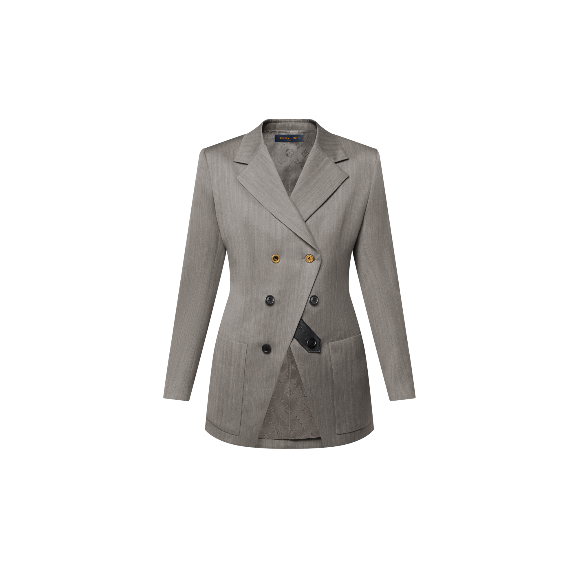 Questi pantaloni sono realizzati in lana declinata in una tonalità classica, che permette di creare look sartoriali senza tempo. Gli inserti grafici con motivo color block donano un tocco contemporaneo alla parte inferiore. L'elegante silhouette a gamba ampia è valorizzata da pieghe che conferiscono struttura e raffinatezza al modello, mentre un dettaglio con firma Louis Vuitton rifinisce una delle tasche a filetto sul retro.