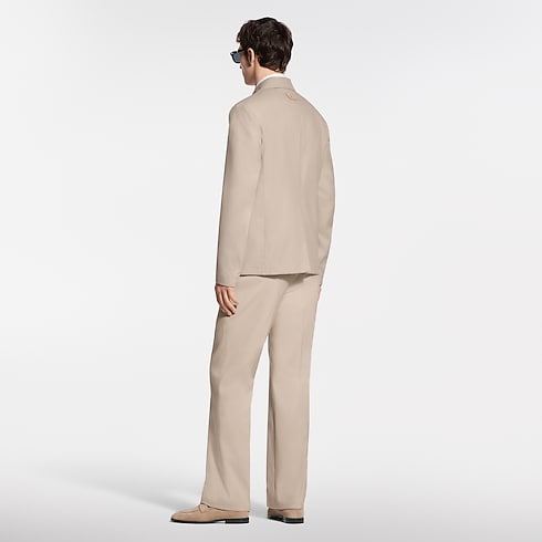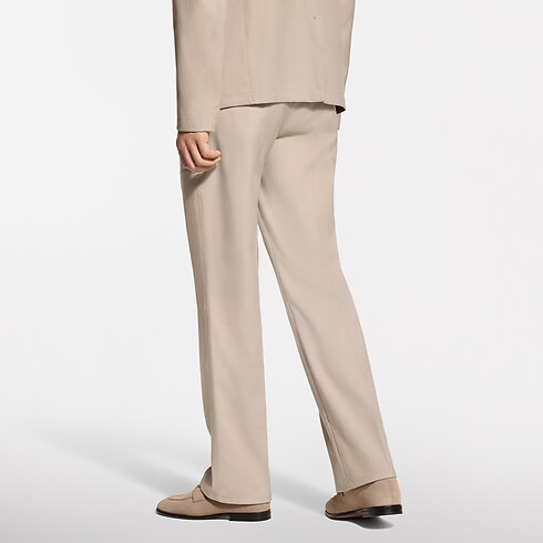 I pantaloni sartoriali presentano una raffinata silhouette ispirata all'abbigliamento da lavoro. Realizzati in un pregiato misto seta e cotone biologico color beige, uniscono traspirabilità a una morbida lucentezza. Le due ampie tasche applicate sul davanti sono impreziosite da borchie dorate con fiore Monogram, mentre un dettaglio con iniziali LV intessute decora con eleganza il retro. La creazione può essere abbinata alla giacca coordinata per un completo moderno, perfetto per la primavera.