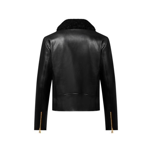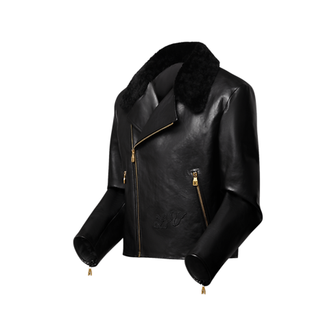 La giacca da biker da sera, realizzata in morbida pelle di vitello, reinterpreta l'intramontabile modello in una sofisticata versione per i giorni più freddi. Il capospalla dal taglio corto si distingue per la silhouette essenziale e l'elegante colletto in shearling dalla tonalità nera. Il motivo LV Ribbon ricamato tono su tono aggiunge il tocco distintivo della Maison.