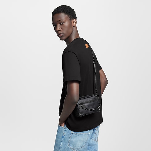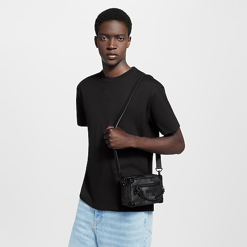 La pochette Soft Trunk Mini è realizzata in tela Damoflage Black, con finiture in vacchetta. Il modello compatto è impreziosito dall'iconico motivo Damier pixellato in raffinate sfumature di grigio e nero, che rispecchia l'originale visione creativa di Pharrell Williams. L'esclusivo accessorio è completato dai manici superiori in pelle e dalla tracolla amovibile e regolabile, che offrono varie opzioni di stile.
