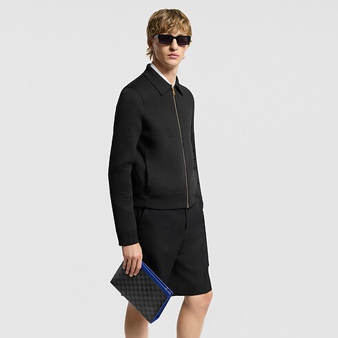 La pochette Voyage MM si distingue per la finitura in pelle color blu brillante lungo la parte superiore, che dona un tocco di originalità. L'elegante accessorio, realizzato in tela Damier Graphite, può essere portato a mano oppure inserito in valigia per tenere separati articoli da toilette o documenti. L'interno della creazione presenta una tasca piatta e sei fessure per carte.