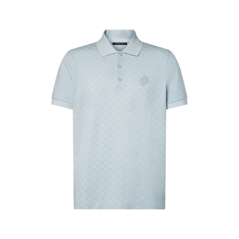 La polo a maniche corte in una delicata sfumatura di azzurro è perfetta da abbinare alle tonalità pastello di questa stagione. Il pregiato tessuto in maglia di piqué di cotone è impreziosito da un motivo Damier all-over in trama jacquard, caratterizzato da una finitura delicatamente testurizzata, mentre la firma Marque L.Vuitton Déposée ricamata tono su tono decora elegantemente la parte sinistra del petto. I bottoni perlati sulla mezza abbottonatura aggiungono un raffinato tocco in stile dandy.