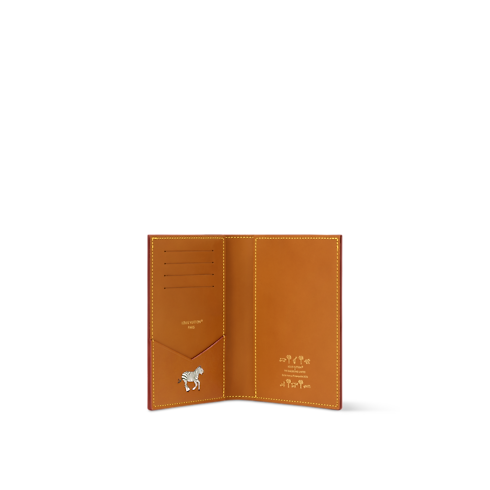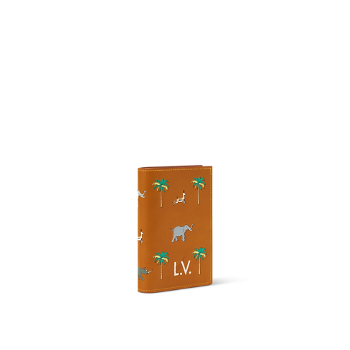 Il porta passaporto, ideato da Pharrell Williams, celebra l'estetica del viaggio ispirata al film The Darjeeling Limited. Realizzato in pregiata pelle di vitello naturale con effetto patinato, è impreziosito da immagini di animali in movimento. L'elegante accessorio presenta quattro fessure per carte, una tasca piatta e due aperte.