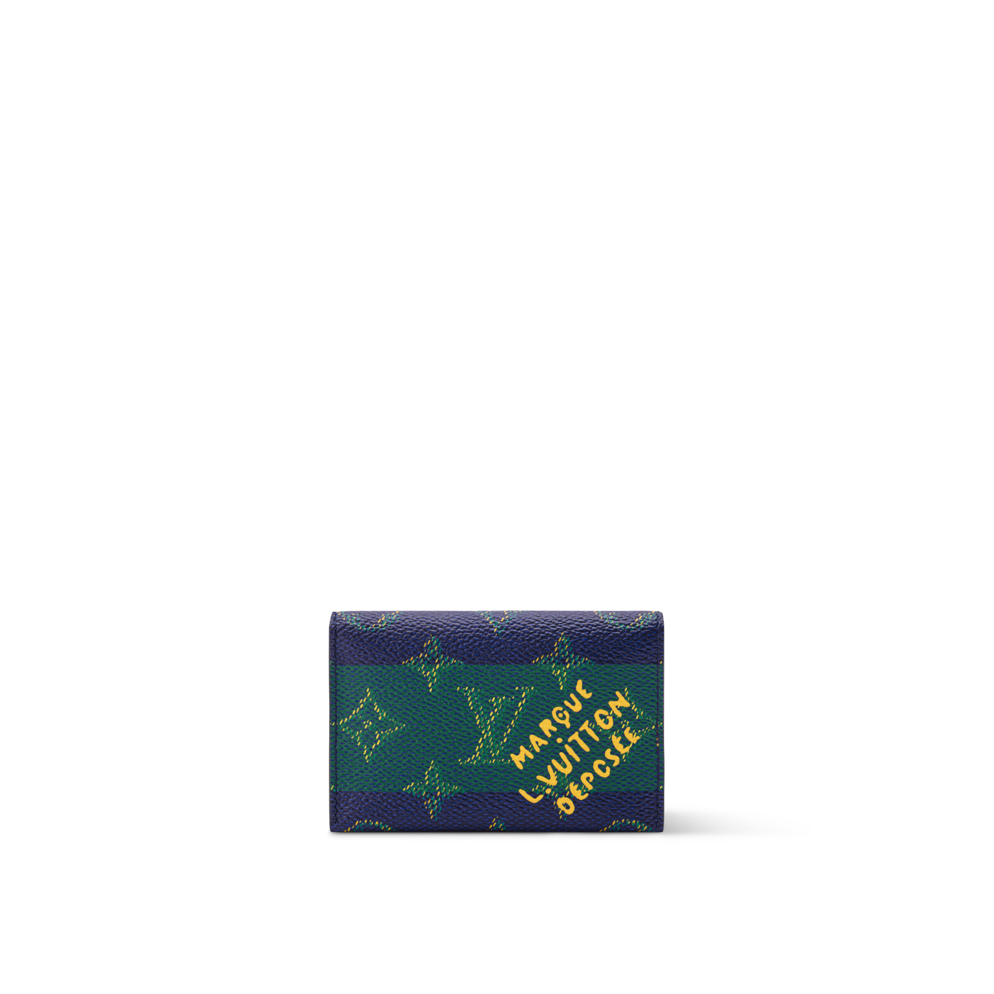 Il portacarte di credito Slim è realizzato in tela Damier Ébène. L'originale modello è impreziosito dai decori raffiguranti i volti di Pharrell Williams e del designer giapponese Nigo, che hanno collaborato per la Collezione Autunno-Inverno 2025. Il pratico accessorio, completato dalla chiusura con bottone a pressione, presenta all'interno quattro fessure per carte e tessere.
