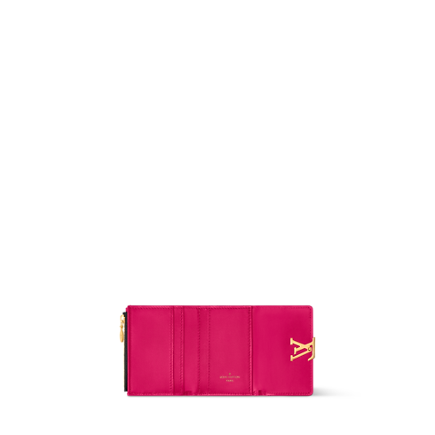 Il portafoglio Capucines XS, realizzato in pelle Taurillon, può essere facilmente inserito in qualsiasi borsa dell'omonima linea, incluso il più compatto modello BB. Il piccolo accessorio, foderato in pelle di vitello liscia, accoglie tutto l'essenziale grazie all'ampia tasca e alle pratiche fessure per carte di credito. La chiusura con bottone a pressione è impreziosita dall'iconica firma LV rivestita in pelle.