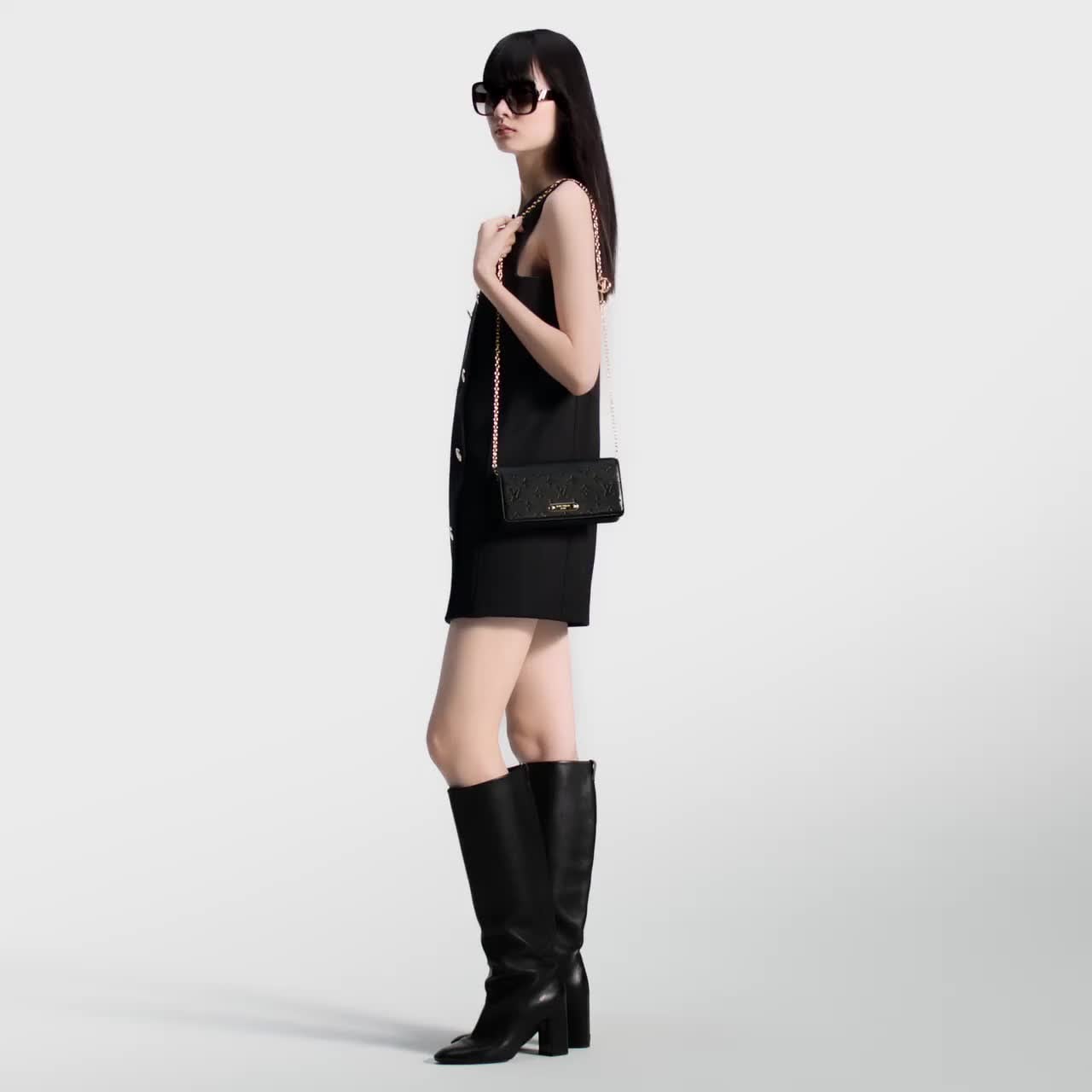 Il portafoglio con catenella Lily, dalla versatile forma rettangolare, è realizzato in morbida pelle Monogram Empreinte. L'elegante accessorio, dallo stile rétro, è impreziosito da un dettaglio color oro con firma Louis Vuitton incisa. Il raffinato modello, abbastanza capiente da contenere gli oggetti essenziali, è completato dalla tracolla amovibile e regolabile, rifinita da un charm con logo LV Circle.