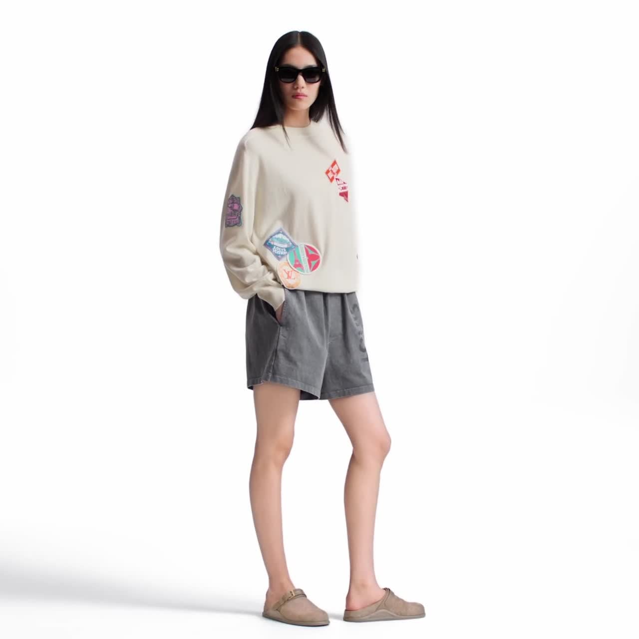 Il pullover, parte della Collezione Flight Mode, è realizzato in pregiata maglia di cachemire. La creazione, dall'allure accattivante, si distingue per le applicazioni ricamate e impreziosite dalla firma Louis Vuitton, che aggiungono una nota di colore e rendono omaggio alla tradizione della Maison legata ai viaggi. Gli orli a coste completano l'esclusivo modello con un tocco classico.