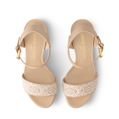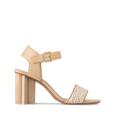 Il sandalo Silhouette, realizzato in pelle di vitello, è impreziosito dall'iconico motivo della Maison ricamato in trama jacquard, dall'esclusivo effetto geometrico. Il modello, dall'allure estiva, si distingue per il tacco alto a forma di fiore Monogram, dettaglio emblematico dell'omonima linea. La calzatura è completata dal cinturino alla caviglia, caratterizzato dagli occhielli oversize e dalla fibbia in metallo dorato.