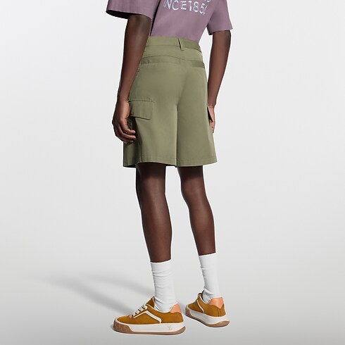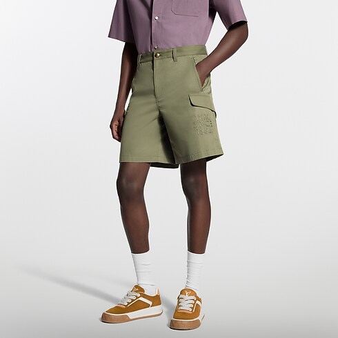 Questi intramontabili short cargo color kaki uniscono eleganza e funzionalità, e si ispirano al raffinato tema Hiking della stagione. Realizzati in tessuto tecnico di misto cotone, presentano pratiche tasche laterali, mentre la firma L.V.M. Legacy ricamata tono su tono impreziosisce la gamba sinistra. Questo capo versatile è perfetto per completare una vasta gamma di look quotidiani.