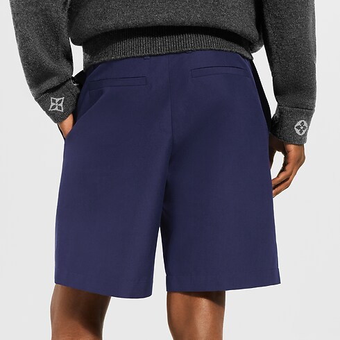 Gli intramontabili shorts in stile workwear, proposti in color blu scuro, sono realizzati in un pregiato misto di cotone, lana e seta. Il modello presenta due comode tasche ampie, e sulla sinistra un’esclusiva applicazione ispirata alla vacchetta naturale richiama la pelletteria tradizionale della Maison. Un capo classico e versatile, perfetto per l’estate, che si abbina con eleganza anche a una giacca coordinata.