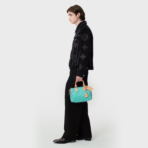 La borsa Speedy P9 Bandoulière 25 è realizzata in morbidissima pelle di vitello. L'accessorio, dotato all'interno di una pochette amovibile, si caratterizza per la vivace tonalità ispirata alle pietre preziose. La creazione, parte della linea "From Paris to Virginia" ideata da Pharrell Williams per la Collezione Autunno-Inverno 2024, è arricchita dal decoro con cavalli inciso sulle staffe dei manici.